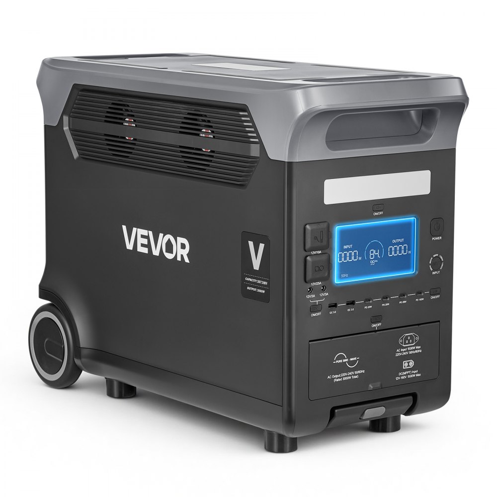 VEVOR draagbare stroomgenerator, 3000W zonnegenerator, 3072Wh LiFePO4-batterijback-up met 13 uitgangen voor noodgevallen thuis, kamperen in de buitenlucht en camperreizen (zonnepaneel NIET inbegrepen)