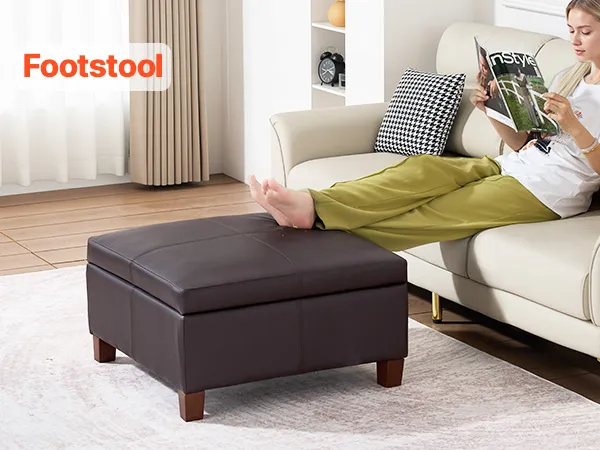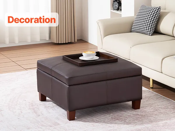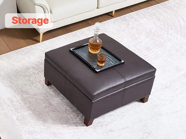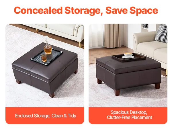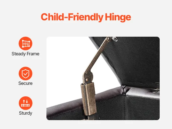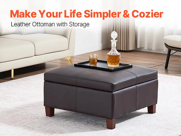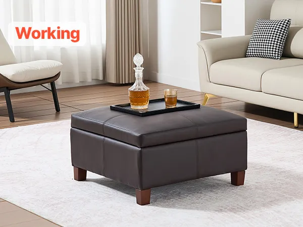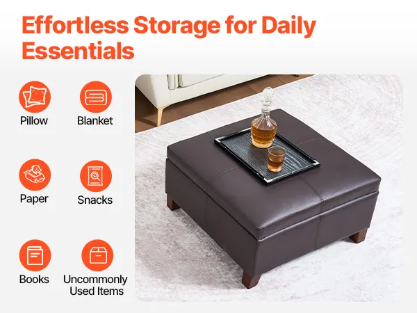Moeiteloos openen en direct toegang: Til het gevoerde deksel op en het blijft openstaan zonder risico op een plotselinge val of verrassingen. Of u nu speelgoed of dekens opbergt, onze leren opbergpoef biedt u veiligheid en handsfree gemak.