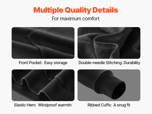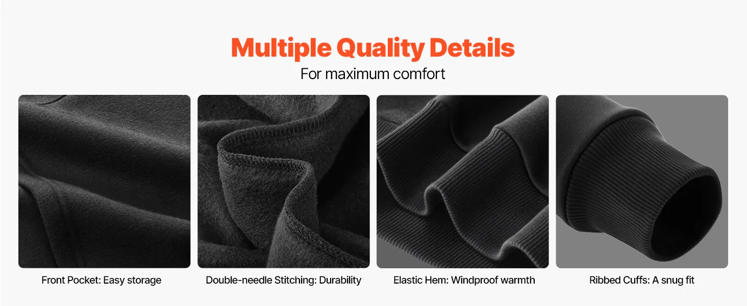 Functionele details: Dubbel gestikte naden blijven mooi, zelfs na talloze keren dragen. De elastische manchetten en zoom van onze hoodie sluiten perfect aan, terwijl de kangoeroezak aan de voorkant je handen warm houdt en je essentials bij de hand hebt.