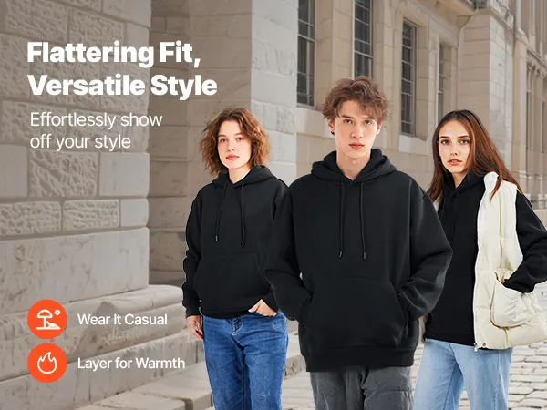 VEVOR Dameshoodie, maat M, fleece, lange mouwen, basic hoodie, warm en huidvriendelijk, praktisch en trendy, sweatshirt met grote zak voor herfst en winter, zwart