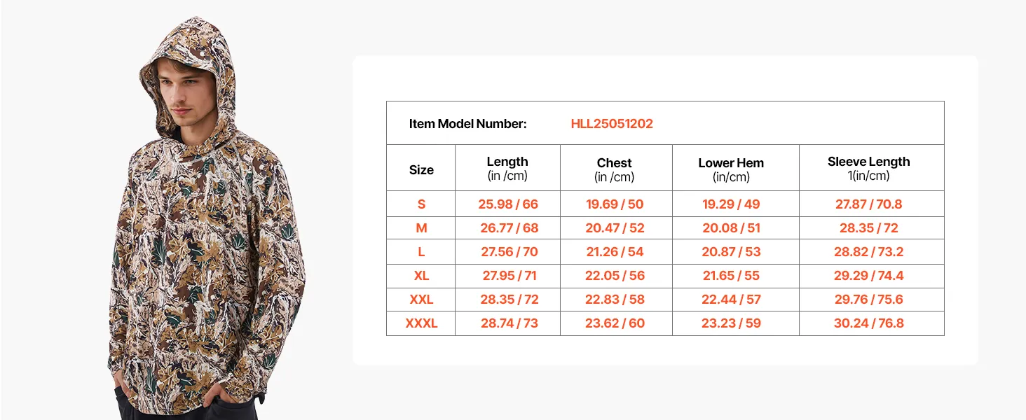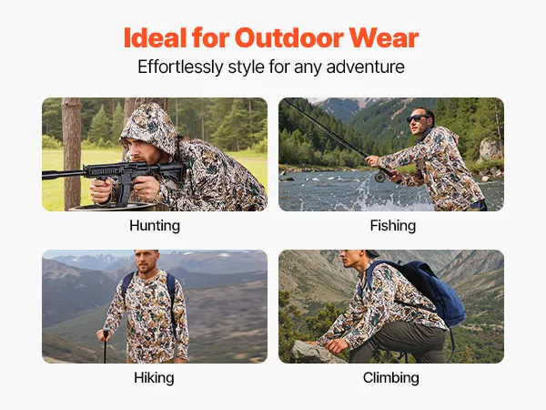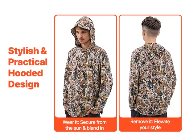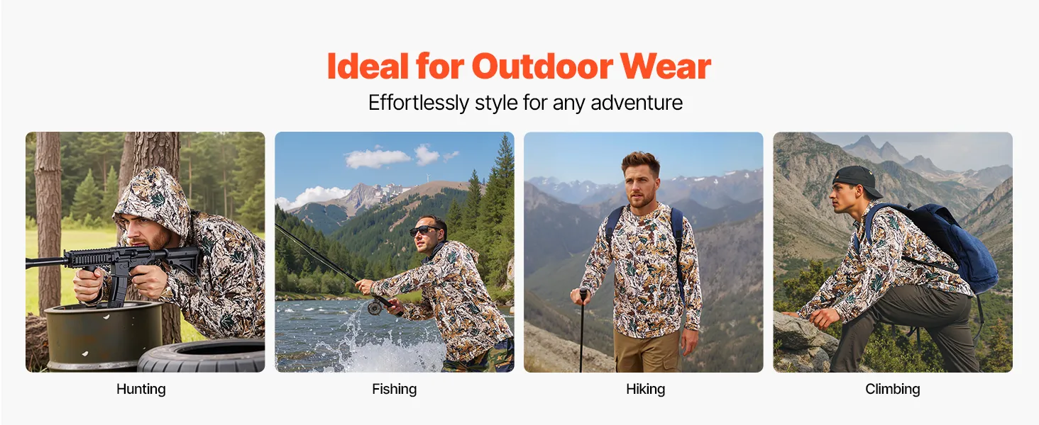 Premium stofmix: Deze camouflage hoodie is gemaakt van een mix van 91,1% polyester en 8,9% spandex – lichtgewicht, ademend en rekbaar. Hij houdt je koel en droog, klaar voor allerlei buitenavonturen.