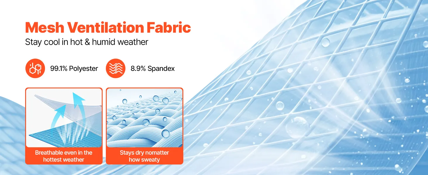 We combineren 91,1% polyester met 8,9% elastaan voor rekbaar, sneldrogend comfort. De luchtige mesh-stof bestrijdt warmte en vocht, zodat jij je kunt concentreren op de sensatie, niet op het zweten.