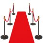 VEVOR 6-delige afzetpaalset met rode loper (10 m) en 4 rode fluwelen touwen (1,5 m), navulbare voet voor concerten, tentoonstellingen, hotels, bioscopen (zwart)