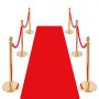 VEVOR 6-delige afzetpaalset met rode loper (8 m) en 4 rode fluwelen touwen (1,5 m), navulbare voet voor concerten, tentoonstellingen, hotels, bioscopen (Goudkleurig)