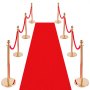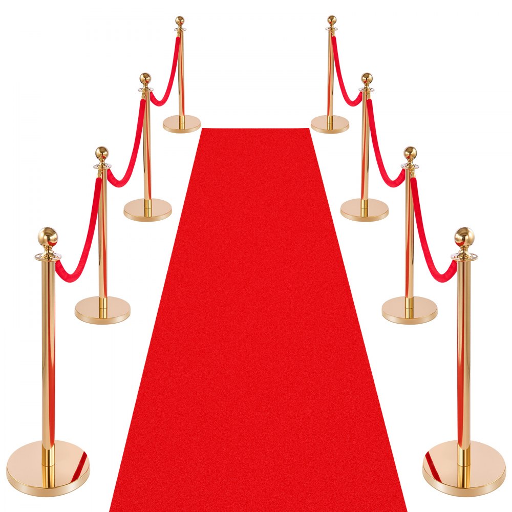 VEVOR 8-delige afzetpaalset met rode loper (10 m) en 6 rode fluwelen touwen (1,5 m), navulbare voet voor concerten, tentoonstellingen, hotels, bioscopen (Goudkleurig)