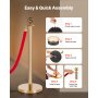 Snelle montage: geen gereedschap nodig! Vul de standaards met zand of water, schroef de voetjes erop en je fluwelen touwen en standaards zijn klaar voor gebruik. Eenvoudig te monteren en nog eenvoudiger te gebruiken wanneer je ze nodig hebt.