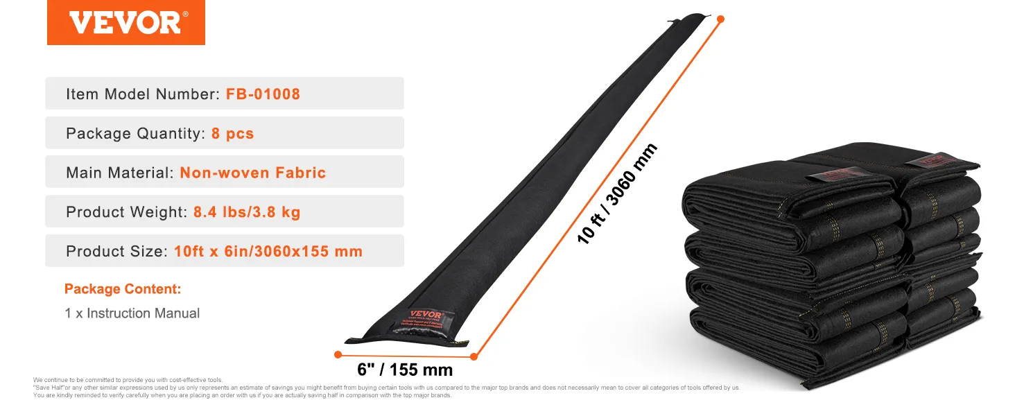 Effectieve bescherming tegen overstromingen: deze set bevat 8 stormvloedkeringen, elk 10 voet x 6 inch (3060 x 155 mm) groot, met 619 g absorberende gel per barrière, die tot 12,5 kg water kan vasthouden. Wanneer ze in contact komen met water, zetten ze snel uit en vormen ze een stevige, 7,62-10,16 cm dikke, robuuste barrière die overstromingen effectief tegenhoudt en uw huis, garage en kelder beschermt.