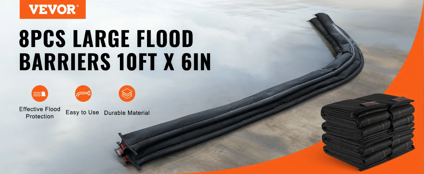 Draagbaar en handig: de waterkering weegt slechts 3,2 kg (7,1 lbs), is draagbaar en licht en kan worden opgevouwen om ruimte te besparen in opbergkasten. Opmerking: Vermijd gebruik met zout water en sleep of rijd niet als de barrière volledig verzadigd is om chemische reacties en luchtlekkage te voorkomen.