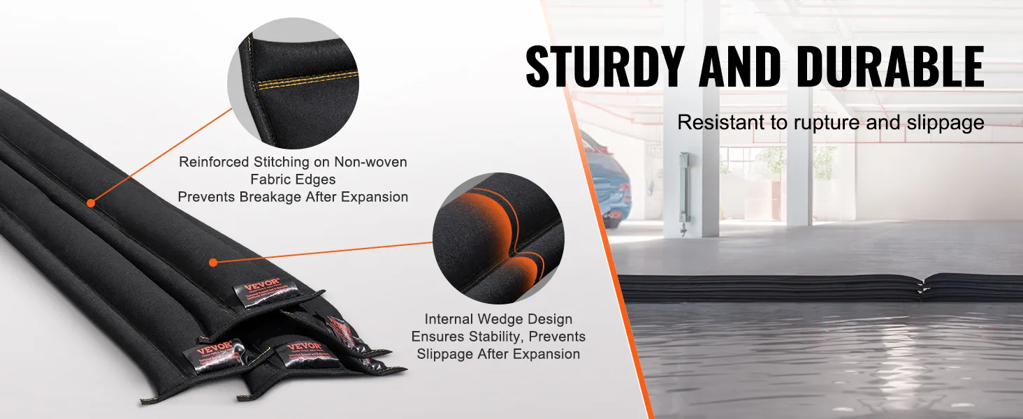Duurzame constructie: gemaakt van niet-geweven stof met hoge dichtheid en versterkte naden, deze stormvloedkeringen voor thuis zijn stevig en duurzaam. Geïntegreerde wigconstructie zorgt voor stabiliteit onder druk en biedt 3-6 maanden continue bescherming zonder te verschuiven zodra het is uitgezet.