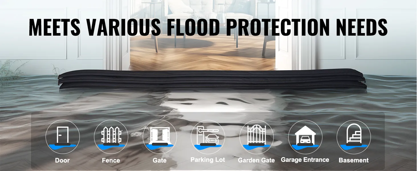 Veelzijdige bescherming tegen overstromingen: deze waterkeringen zijn geschikt voor verschillende overstromingsgevoelige gebieden zoals huisingangen, hekken, poorten, parkeerplaatsen, tuinpoorten, garage-ingangen, kelders enz. en bieden effectieve bescherming tegen zware regenval.