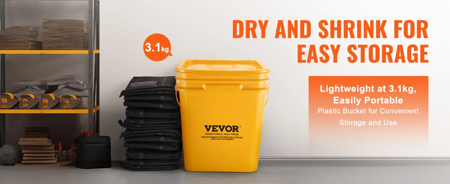 Portable and Convenient: Our dry-shrinkable water dam barrier is easy to store and transport, weighing only 6.2 lbs. It comes with a plastic bucket for storage. Note: Avoid use with saltwater and prevent dragging or driving once fully saturated to prevent chemical reactions and air leakage.