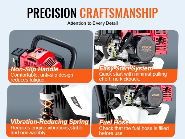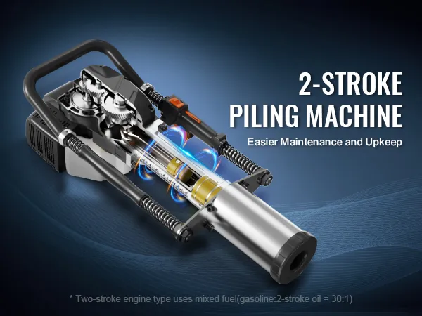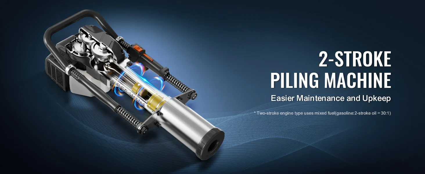 Dankzij de krachtige motor kunt u snel, stabiel en nauwkeurig palen leggen. Hij loopt soepel, slaat niet af bij hoge temperaturen, verbrandt geen gemengde olie en kan lange tijd continu werken.