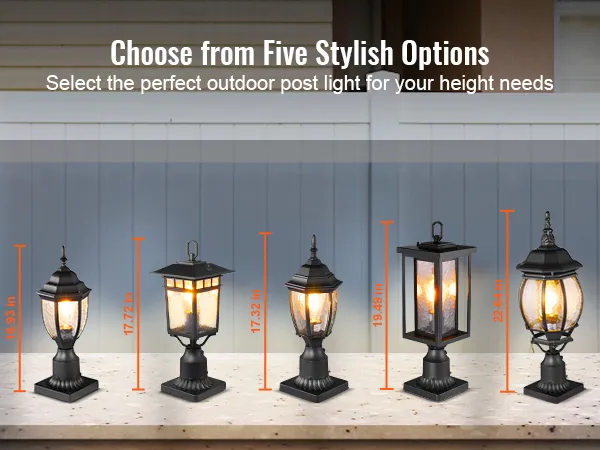 Kies uit vijf verschillende stijlen die passen bij uw buitendecoratiebehoeften en geschikt zijn voor verschillende hoogtes en scènes. Onze buitenlantaarns zijn perfect voor veranda's, tuinen en binnenplaatsen!