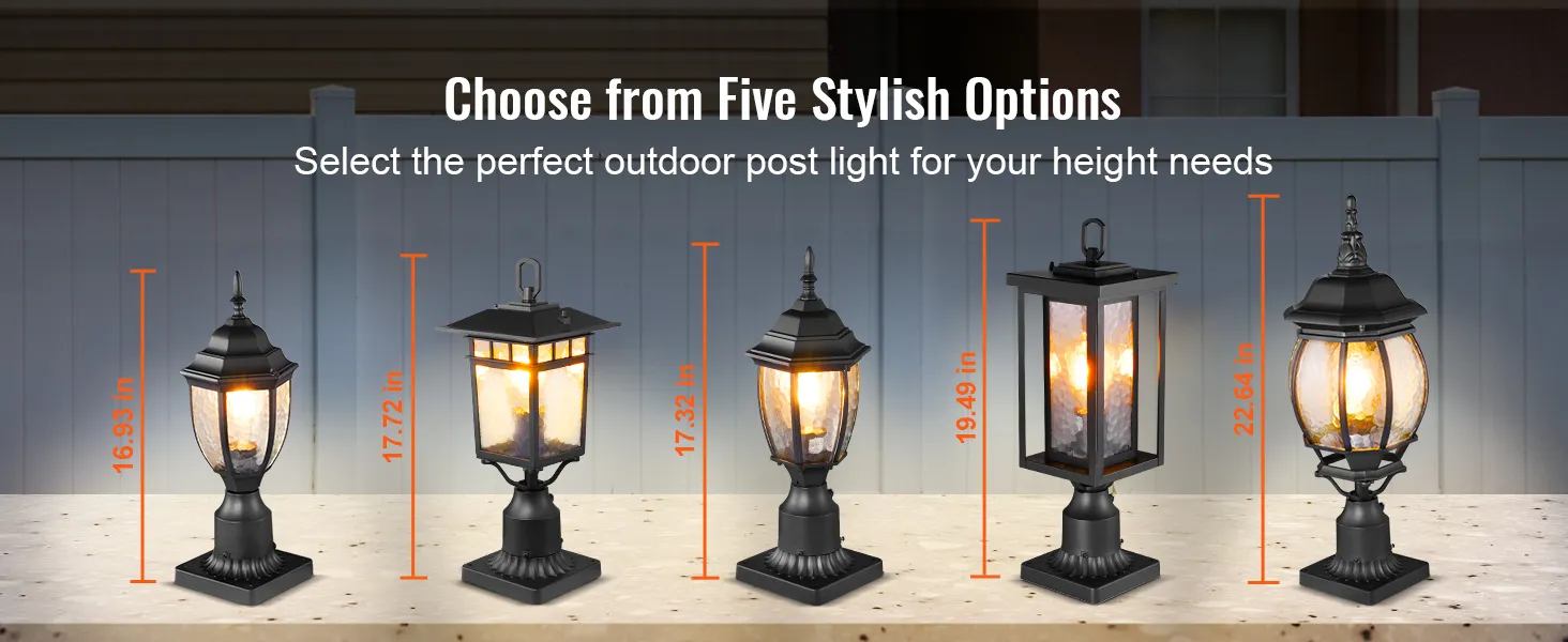 Kies uit vijf verschillende stijlen die passen bij uw buitendecoratiebehoeften en geschikt zijn voor verschillende hoogtes en scènes. Onze buitenlantaarns zijn perfect voor veranda's, tuinen en binnenplaatsen.