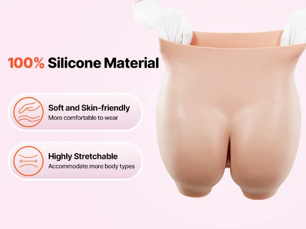 This 100% silicone panty is soft and skin-friendly, providing an unparalleled wearing experience. Its excellent stretchability allows the butts to accommodate a variety of body types, offering a more comfortable fit and showcasing a natural, realistic appearance.