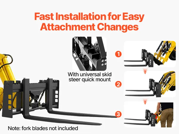 VEVOR Skid Steer Loader, 1814 kg nominaal vermogen, 1150 mm palletvorkframeverlengingen met 50,8 mm trekhaak en speerhulzen, past op snelkoppelladers, alleen frame