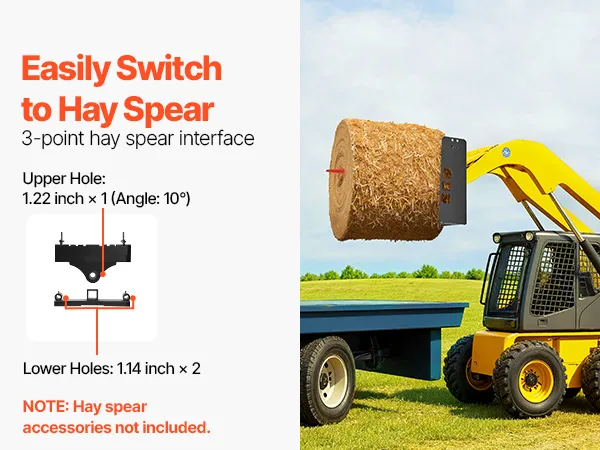 Transformeer uzelf in een hooibalenpers: met drie hooibalenkoppelingen (31 mm bovengat, 29 mm ondergat) maakt deze palletvorkframebevestiging het transporteren van hooibalen een fluitje van een cent! (Hooiprikkers apart verkrijgbaar) Bespaar tijd en energie en klaar de klus snel.