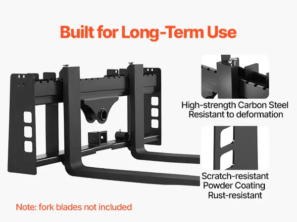 De verdikte plaat van het palletvorkframe is duurzaam en vervormingsbestendig en houdt de vorken stevig op hun plaats, zodat zware objecten veilig kunnen worden vervoerd.