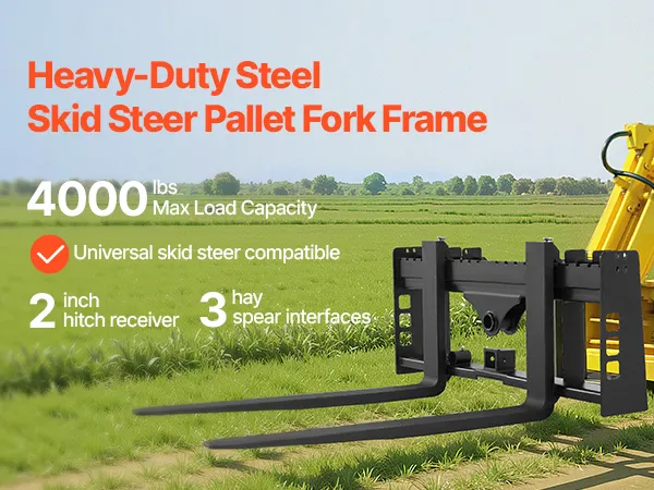 Dit palletvorkframe, met een laadvermogen van 1814 kg, is geschikt voor de meeste schrankladers en tractoren. Ideaal voor het transporteren van hooibalen, bouwmaterialen en meer op boerderijen, in tuinen of op bouwplaatsen. Efficiënt en betrouwbaar voor zware taken.