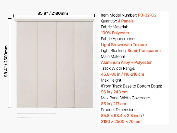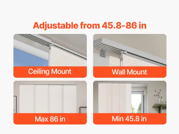 Hoogte op maat: Eenvoudig op de gewenste hoogte af te stellen voor een perfecte pasvorm. Of het nu gaat om een klein raam, een grote glazen schuifdeur of een roomdivider op maat, deze schuifpaneelgordijnen zijn nauwkeurig af te stellen en creëren een professionele, elegante look.