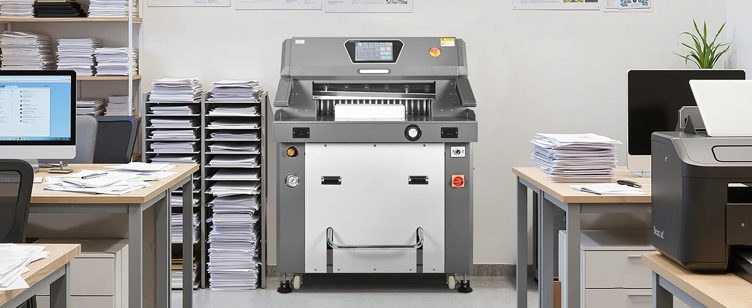 Ervaar professioneel snijden – krachtig, nauwkeurig en moeiteloos. Dankzij intelligente bediening en uitgebreide veiligheidsvoorzieningen verwerkt deze elektrische papiersnijder grote hoeveelheden papier tot gladde en betrouwbare resultaten voor drukkerijen, scholen en kantoren.