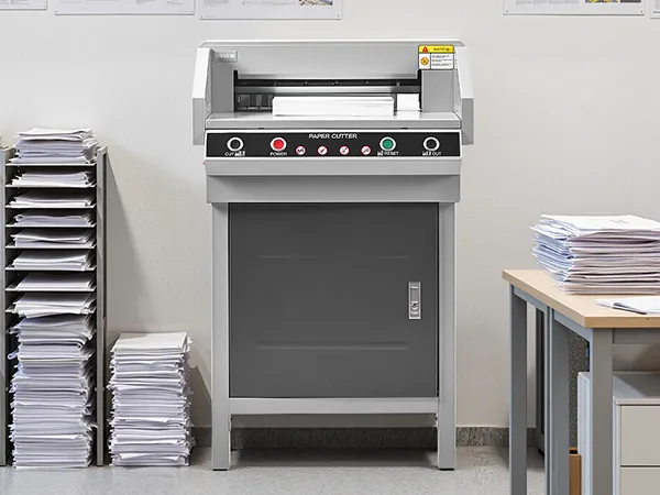 Ervaar professioneel snijden – krachtig, nauwkeurig en moeiteloos. Dankzij intelligente bediening en uitgebreide veiligheidsvoorzieningen verwerkt deze elektrische papiersnijder grote hoeveelheden papier tot gladde en betrouwbare resultaten voor drukkerijen, scholen en kantoren.