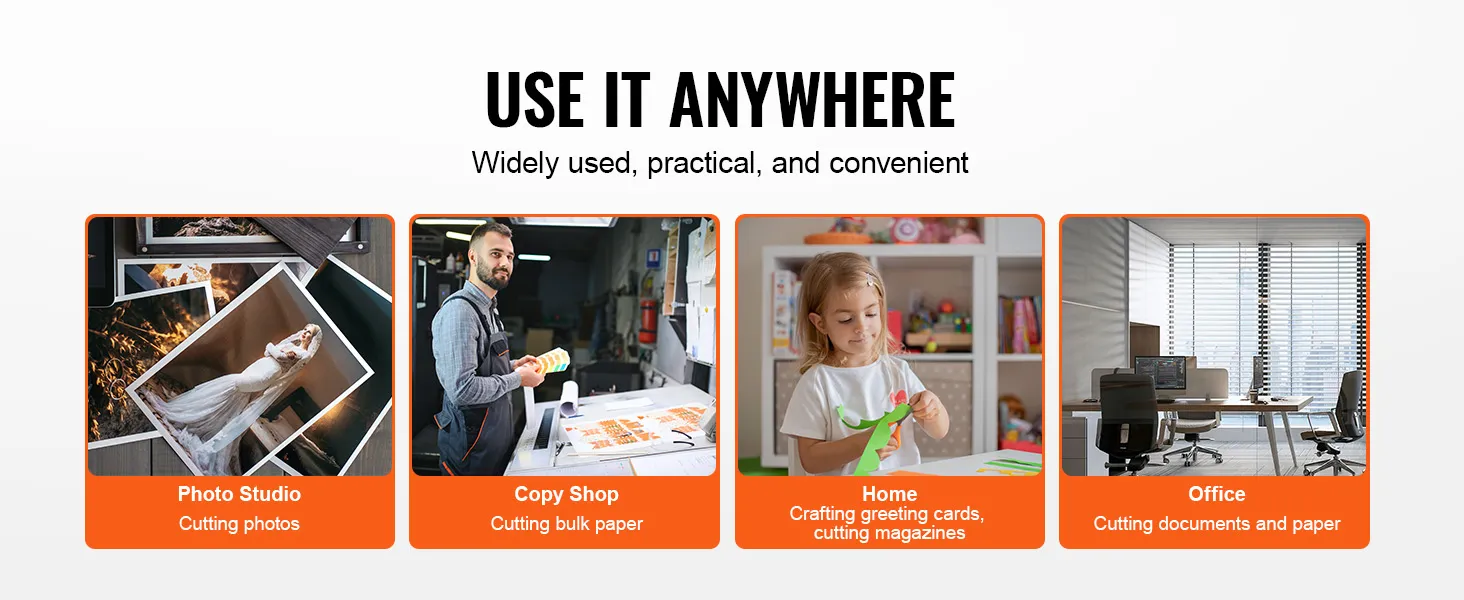 Versatile and Fun: This guillotine paper cutter is your all-in-one tool for any work. From crafting at home to professional photo studios, it's a handy companion. Perfect for print shops and busy offices too. Wherever you need it, it's there to make your life easier and more enjoyable.