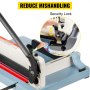 VEVOR industrial paper cutter with blue grid base and adjustable cutting handle.