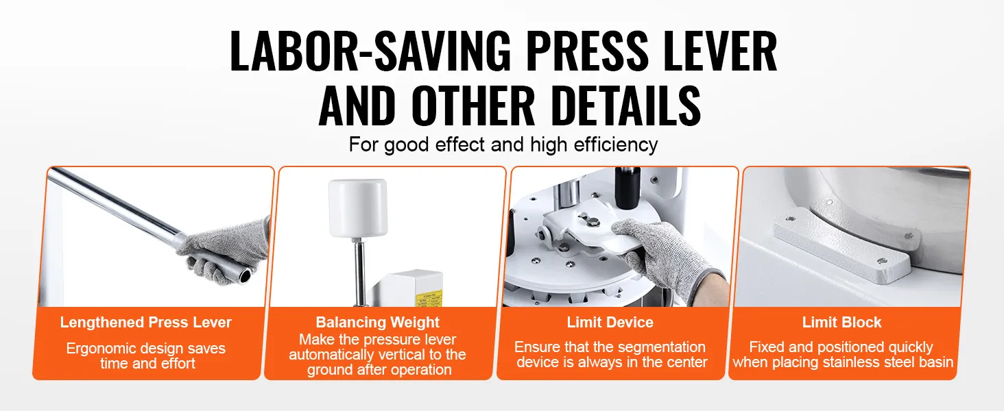 Effort-Saving Lever: The extended lever saves more effort when pressing dough. The end of the lever is designed with a textured grip to increase friction.