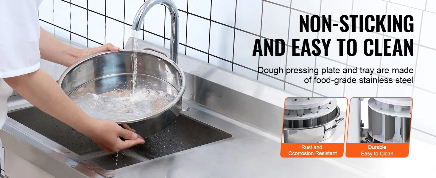 Premium Materials: All key parts are made from high-quality materials for durability. The 304 stainless steel dough cutting blades and pressing plates ensure easy cleaning and perfect cutting performance.