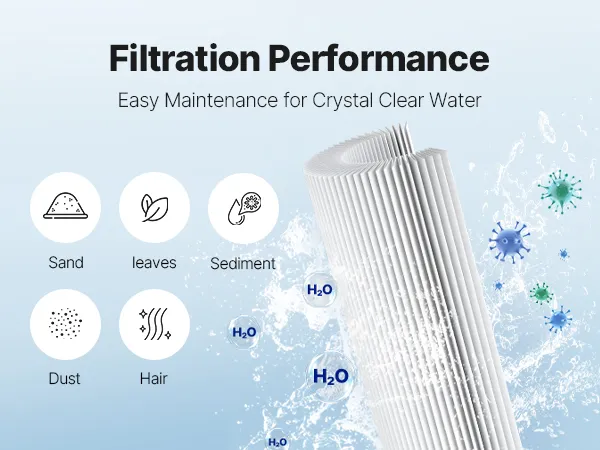 NSF/EPA-gecertificeerd: Deze filtercartridge voor zwembaden en spa's is NSF/EPA-gecertificeerd. Met een filtratieprecisie van 50 micron vangt hij effectief haar, bladeren, stof, vuil en fijne deeltjes op, wat zorgt voor schoon en helder water.