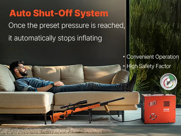 De paintballtankcompressor is uitgerust met een automatisch uitschakelsysteem dat de druk in realtime bewaakt en automatisch stopt met opblazen zodra de vooraf ingestelde maximale druk is bereikt. Het zorgt voor een comfortabele bediening en verhoogde veiligheid, voor een zorgeloze ervaring.