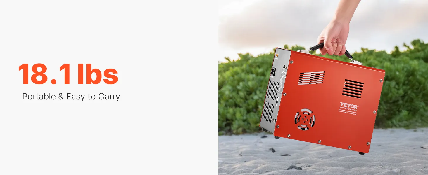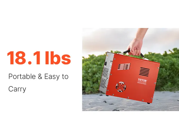 Deze draagbare PCP-compressor is compact, licht en gemakkelijk mee te nemen. Het heeft een handig handvat en u kunt het overal mee naartoe nemen, zowel thuis als buitenshuis, zonder dat u zware apparatuur mee hoeft te slepen.