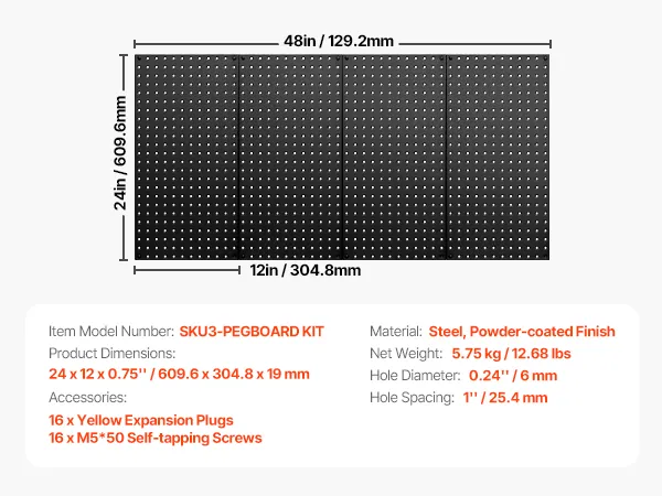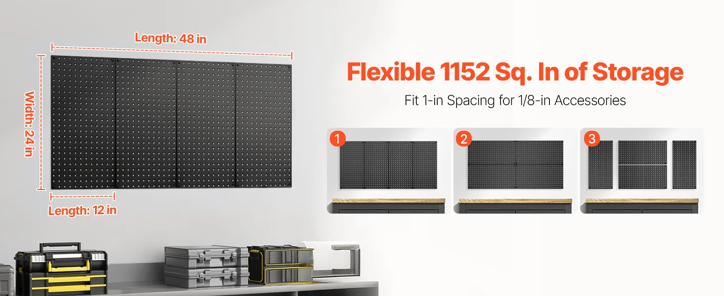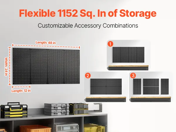 Organized Storage: With a large 1152 square-inch surface, this metal peg board provides ample space to hang and store all your tools. Customize your storage solution by combining various accessories to suit your specific needs.