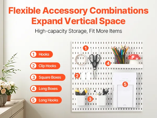Ruimte-uitbreiding: Deze set met wandorganizers voor op kantoor biedt een breed scala aan accessoires, waardoor de ruimte optimaal wordt benut. U kunt componenten combineren om uw opbergruimte te vergroten en uw huis ruimer te laten lijken.