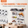 Toepasbaar op verschillende haken: de VEVOR 32 x 32 inch (814 x 814 mm) gereedschapsorganizer voor garageophangborden heeft standaardspecificaties van een gatdiameter van 1/4 inch (0,635 cm) en een gatafstand van 1 inch (ca. 25 mm) en is geschikt voor opbergruimtes standaard 1/4" en 1/8" haken voor veilig ophangen, evenals andere opbergaccessoires zoals opbergdozen, hangers, planken, moersleutelhouders, U-haken, enz. (Houd er rekening mee dat haken niet zijn inbegrepen en apart worden aangeschaft moeten!)