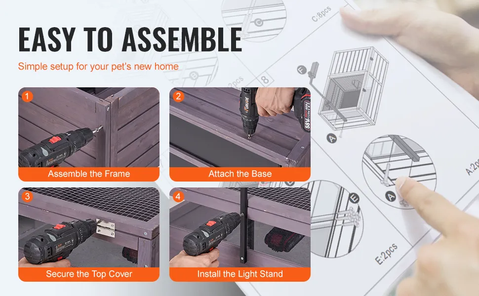 Eenvoudige montage: Het schildpaddenverblijf is ontworpen voor eenvoudige montage en wordt geleverd met voorgeboorde gaten en montage-instructies. Zelfs als je nog nooit eerder soortgelijke producten hebt gemonteerd, kun je het moeiteloos in elkaar zetten en je huisdier een stabiel en comfortabel thuis bieden!