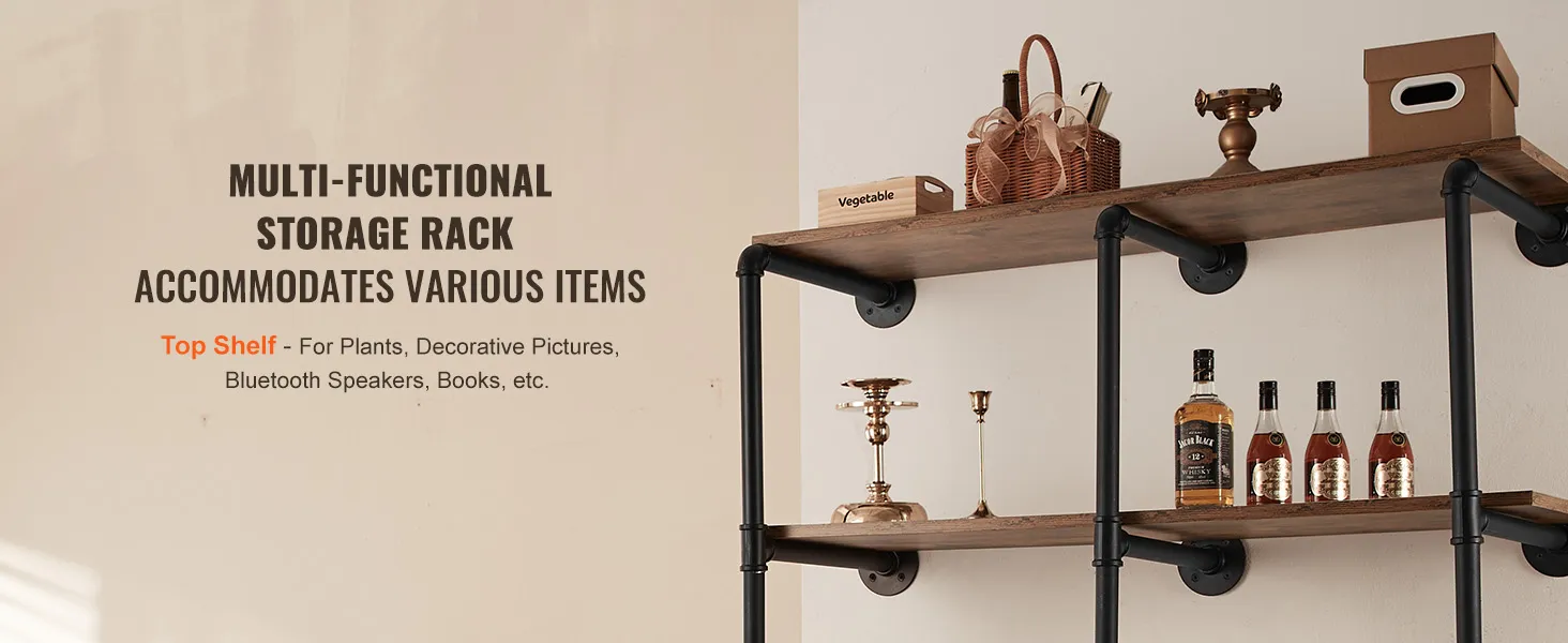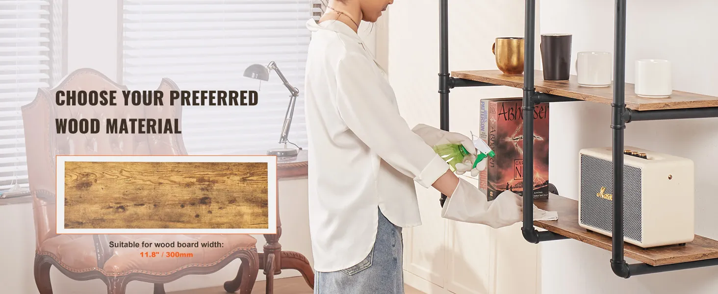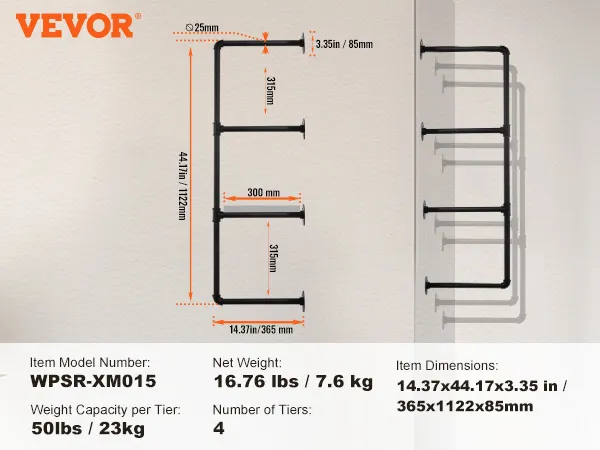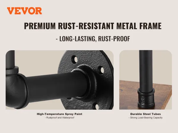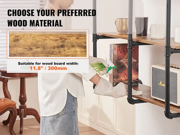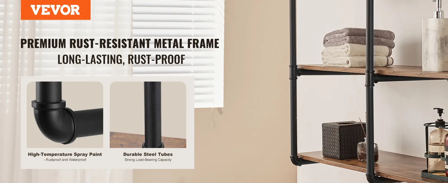 Buis van koolstofstaal: ronde koolstofstalen buis van ∅1 inch / 25,4 mm, sterk draagvermogen, niet gemakkelijk te breken, zorgt voor een veilige en stabiele opslag. 0,6 inch / 15,24 mm dikke houten planken bieden voldoende zwaartekracht zodat u gemakkelijk allerlei voorwerpen kunt plaatsen. Geen problemen meer met makkelijk buigbaar of materiaal van slechte kwaliteit.