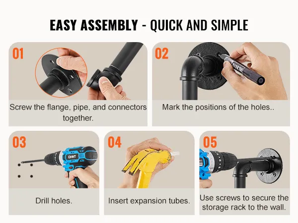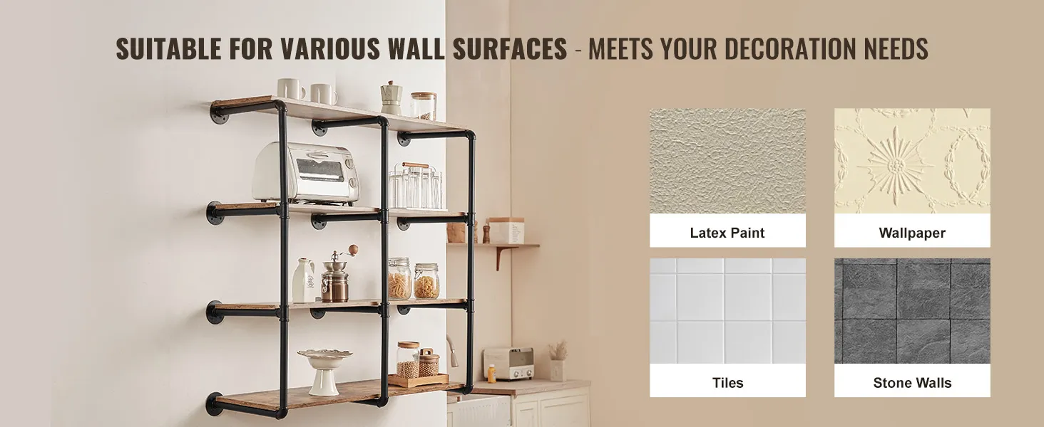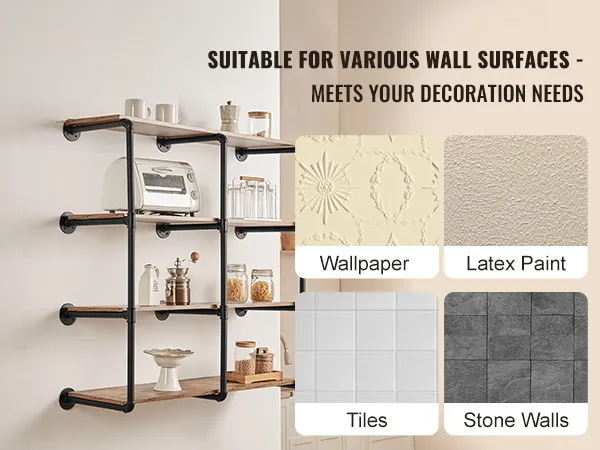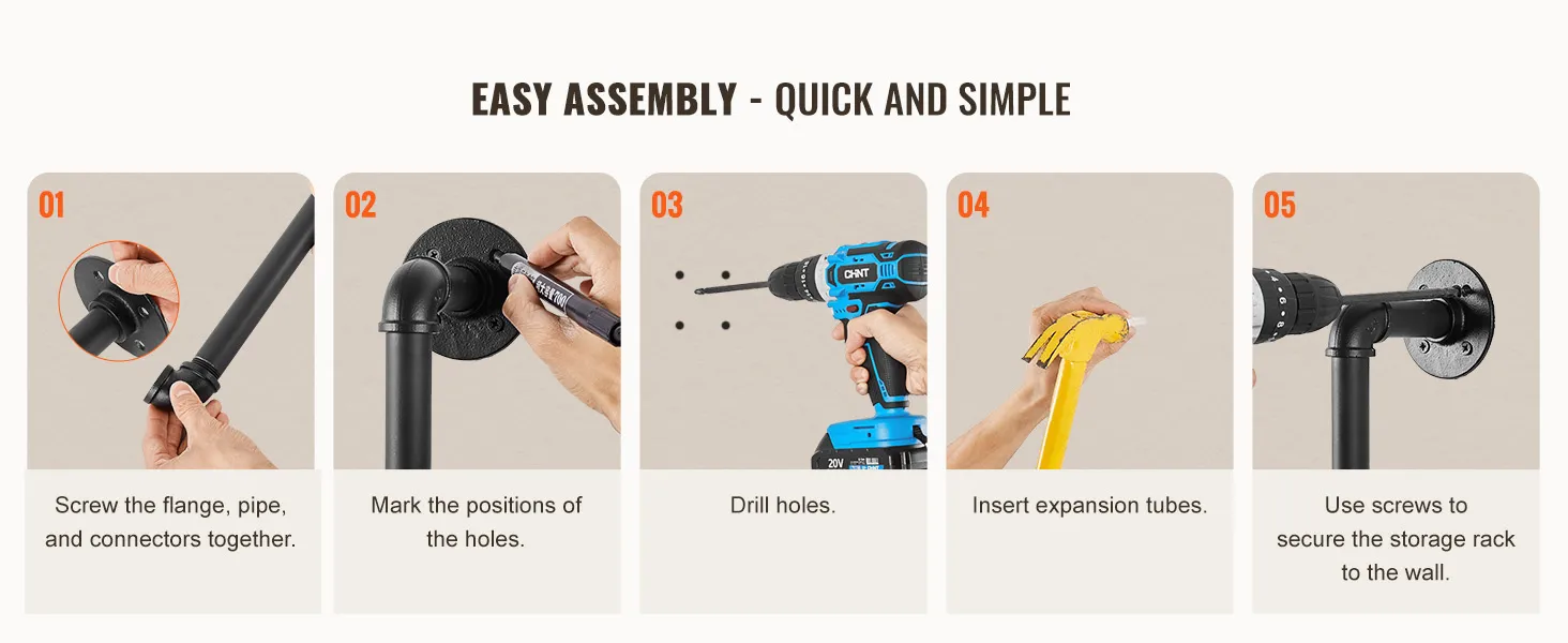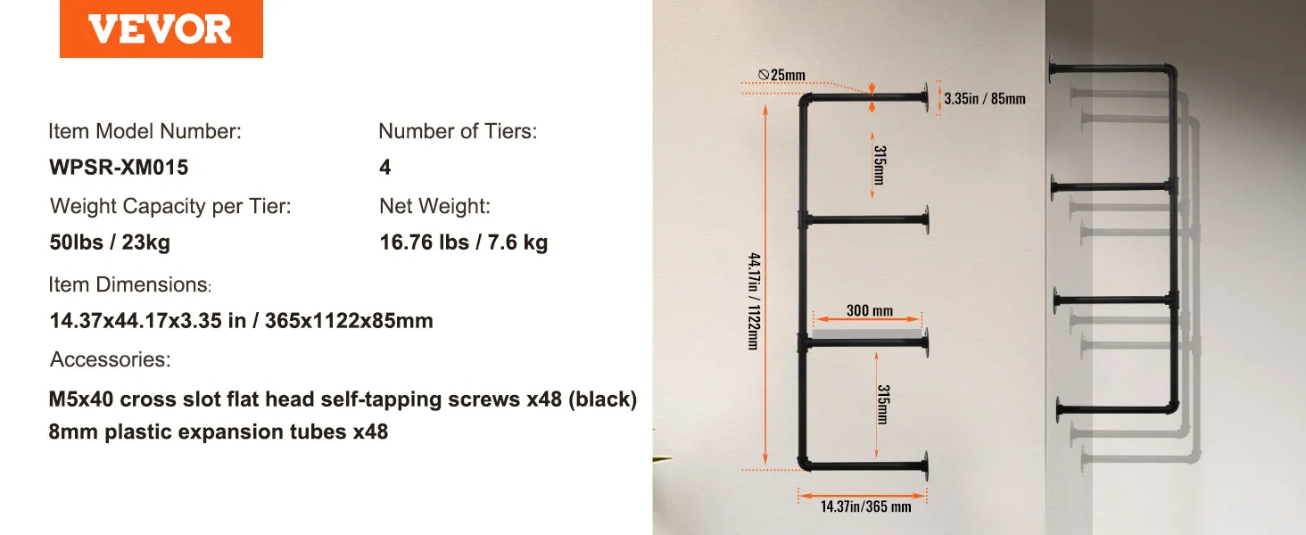 Buis van koolstofstaal: ronde koolstofstalen buis van ∅1 inch / 25,4 mm, sterk draagvermogen, niet gemakkelijk te breken, zorgt voor een veilige en stabiele opslag. 0,6 inch / 15,24 mm dikke houten planken bieden voldoende zwaartekracht zodat u gemakkelijk allerlei voorwerpen kunt plaatsen. Geen problemen meer met makkelijk buigbaar of materiaal van slechte kwaliteit.
