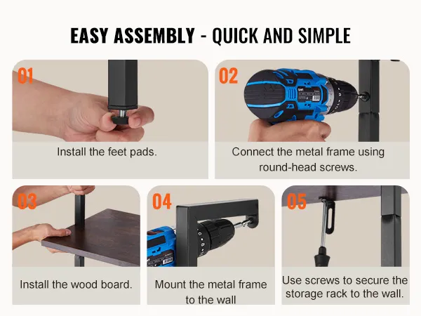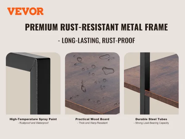 Duurzame stalen buizen: onze planken zijn gemaakt van koolstofstalen buizen, bieden stevige ondersteuning en zijn breukbestendig, waardoor een veilige en stabiele opslag wordt gegarandeerd. De 15,24 mm dikke houten planken bieden voldoende stabiliteit en kunnen gemakkelijk verschillende voorwerpen herbergen zonder dat u zich zorgen hoeft te maken dat ze doorbuigen.