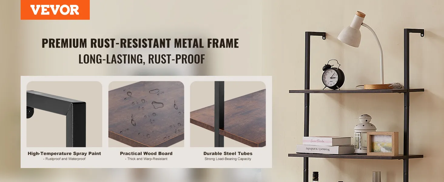 Hoge draagkracht: elke plank is gemaakt van stevige metalen buizen en verdikte houten planken en kan tot 23 kg dragen, waardoor aan verschillende opslagbehoeften wordt voldaan. Van boeken en lijsten tot keukengerei en handdoeken, houd uw ruimte georganiseerd en overzichtelijk!