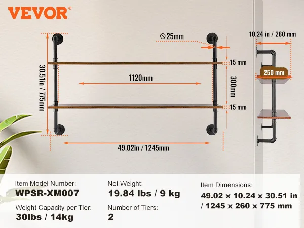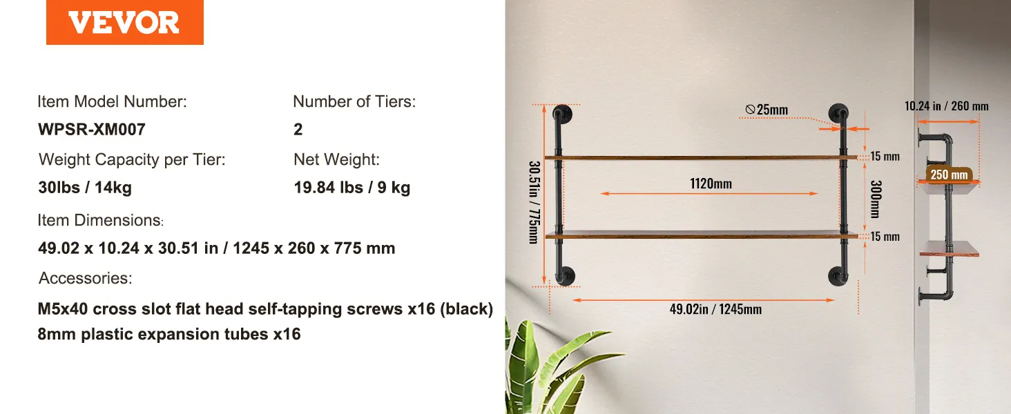 Precise Measurements: Our pipe shelving unit stands at 30" tall with 12" between each shelf. Please measure your installation area beforehand to ensure a perfect fit.