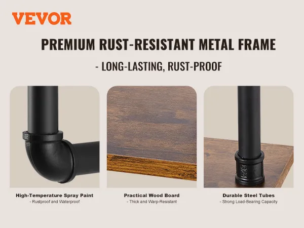 Durable Steel Pipes: Made from ∅1" carbon steel tubes, this shelving unit offers strong support and is resistant to breakage, ensuring a safe and stable storage experience. The 0.6" thick wood boards provide ample strength, easily accommodating different items without the worry of bending.