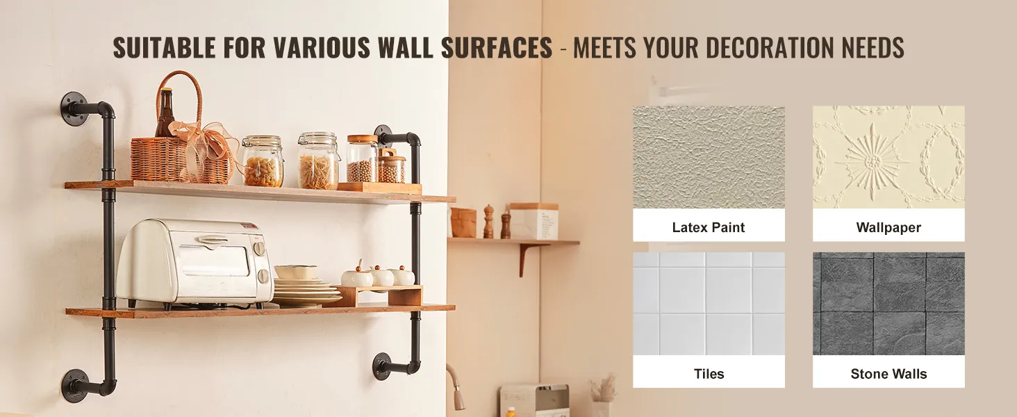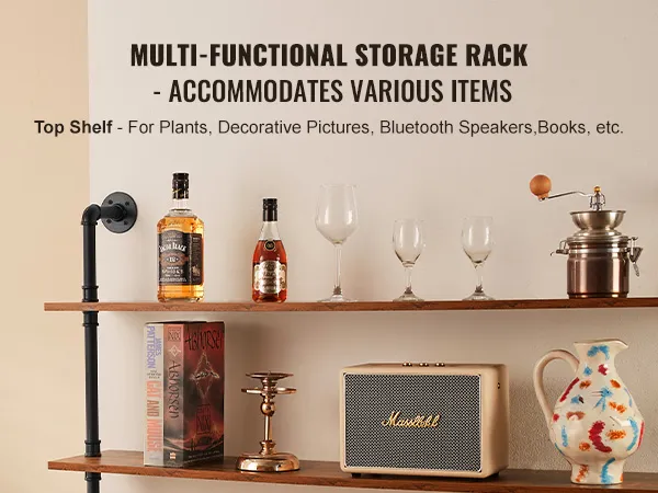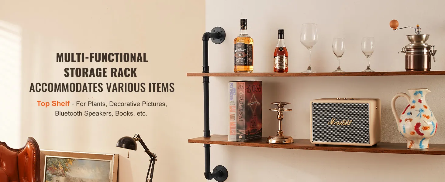 Flexible Use: The design of this metal pipe shelving unit is highly adaptable, easily installed on any wall to maximize space. Perfect for bars, laundry rooms, living areas, or studies, it enhances your storage capabilities effortlessly.