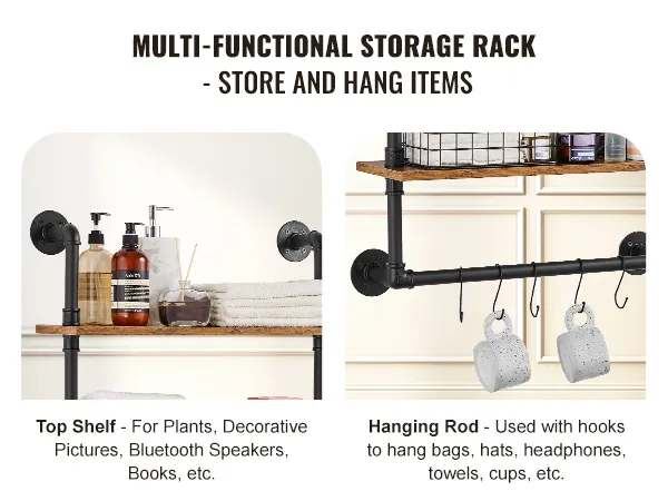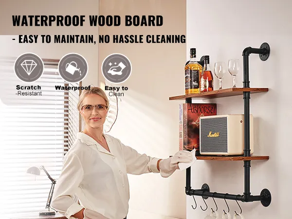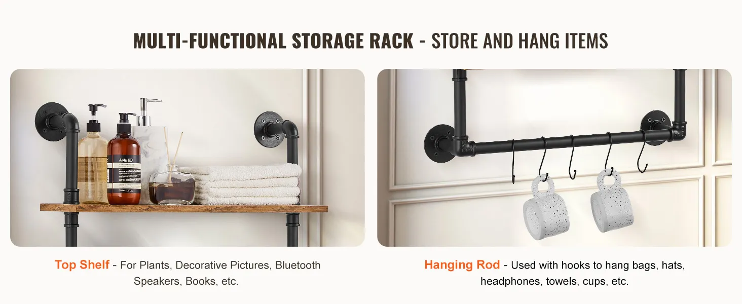Flexibel gebruik: de metalen buisplank is zeer aanpasbaar en kan eenvoudig aan elke muur worden geïnstalleerd om optimaal gebruik te maken van de ruimte. Perfect voor bars, wasruimtes, woonruimtes of thuiskantoren, en breidt moeiteloos uw opbergmogelijkheden uit.