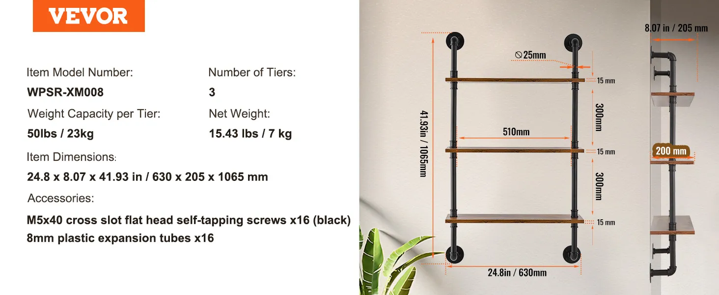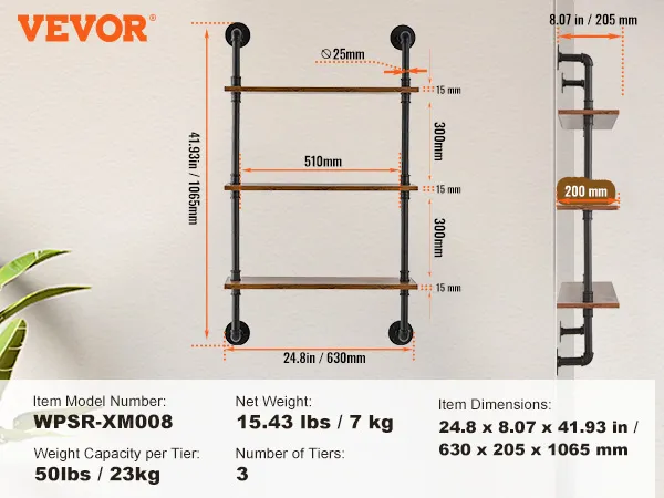 Accurate Measurement: our pipe shelves are 42“ in height, each tier is 12” high, you can measure the installation position before purchase.