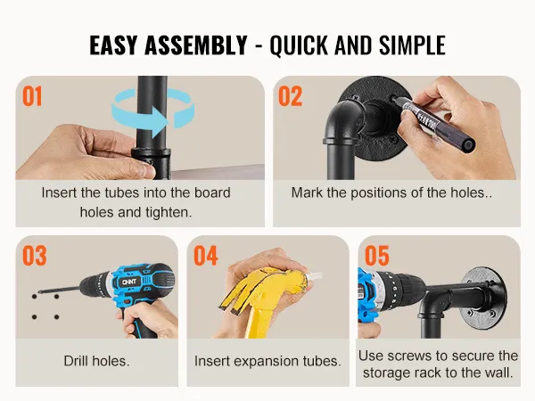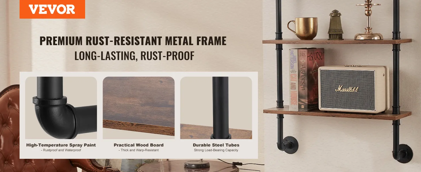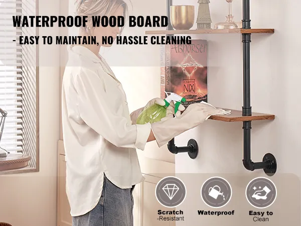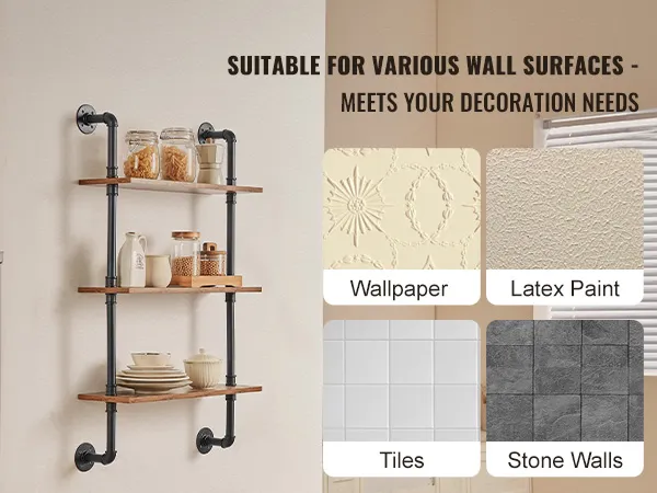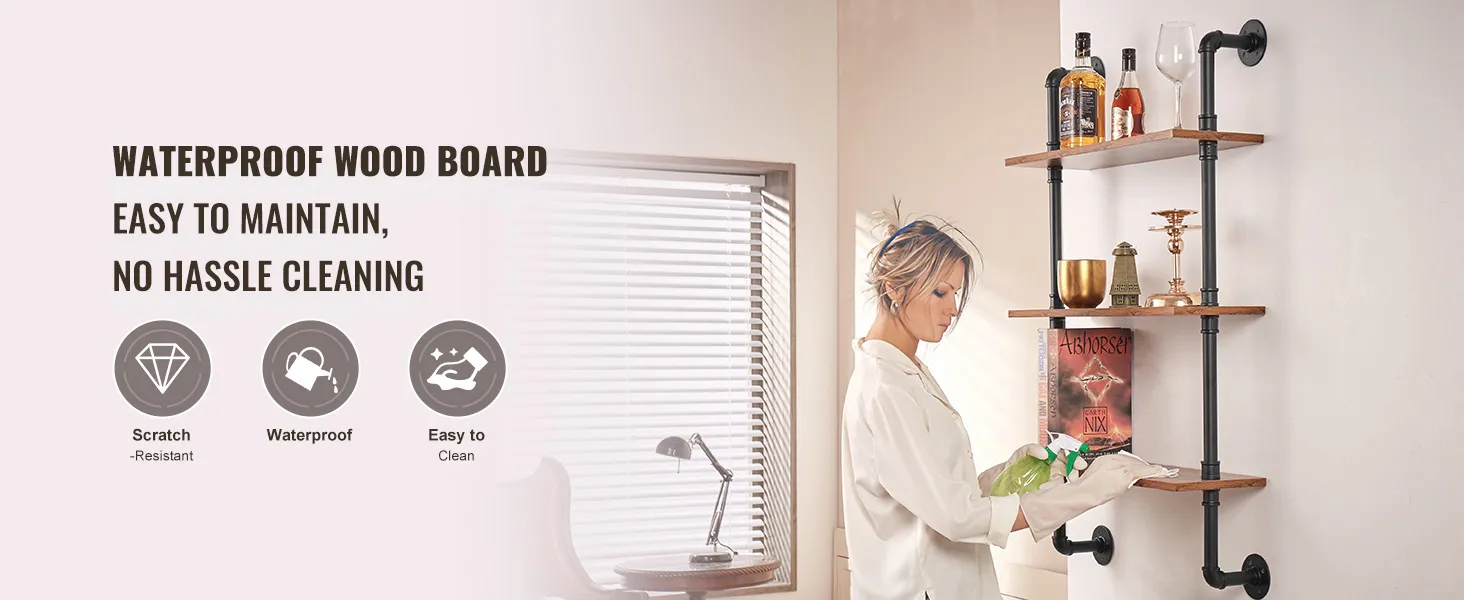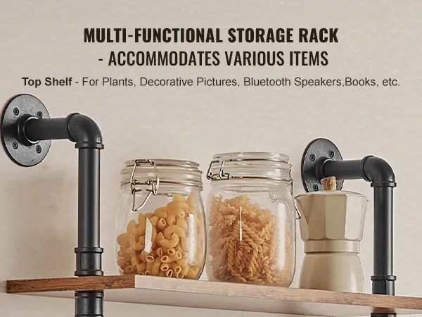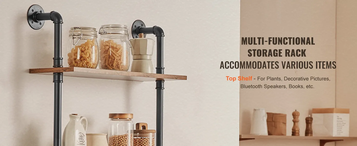 Flexible Use: The metal pipe shelf is designed to be flexible and can be installed on any wall to make full use of space. Whether it is a dining bar, laundry room, living room or study, it can be easily installed to add storage function to your space.