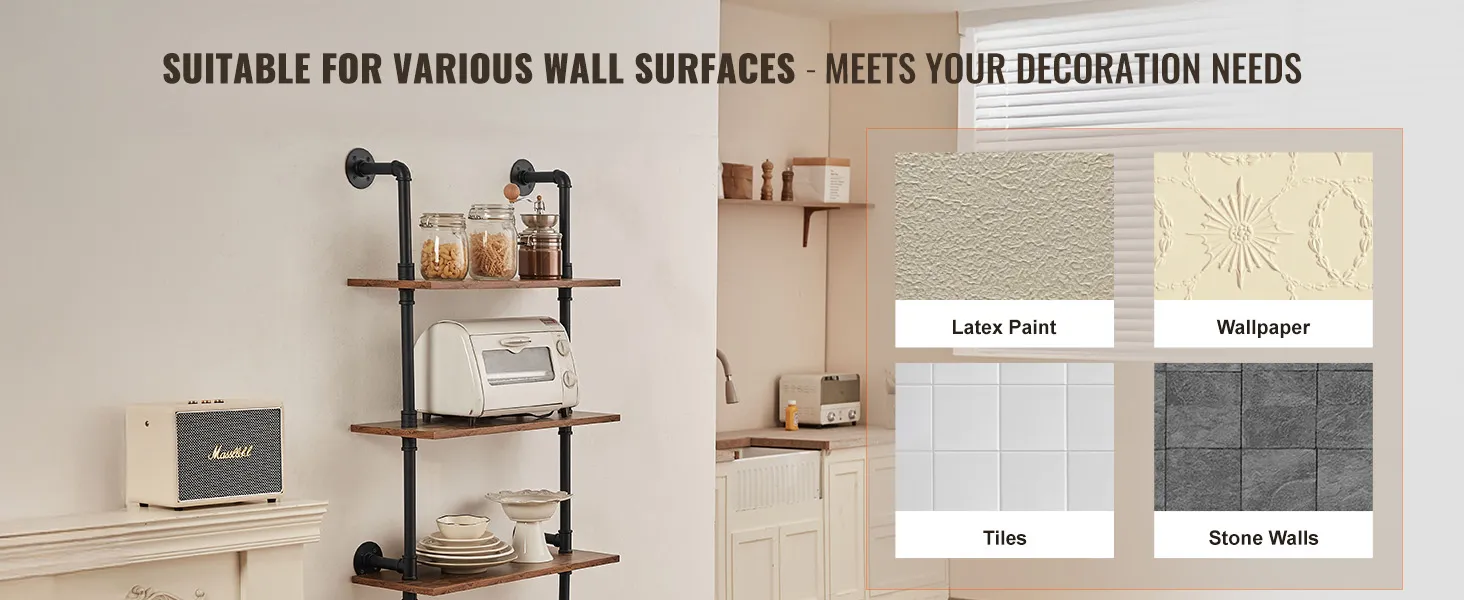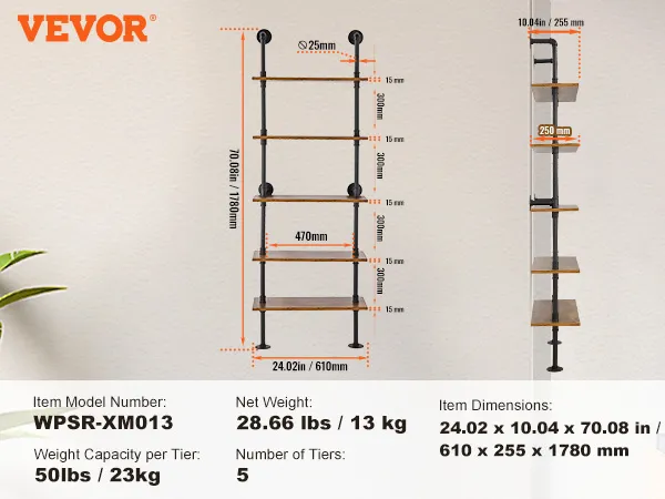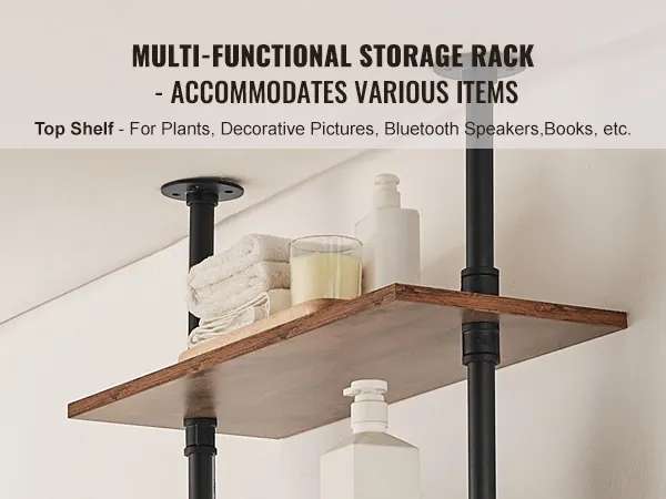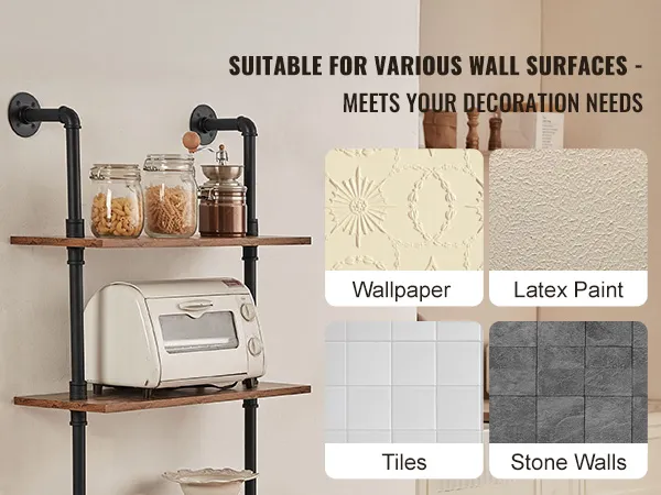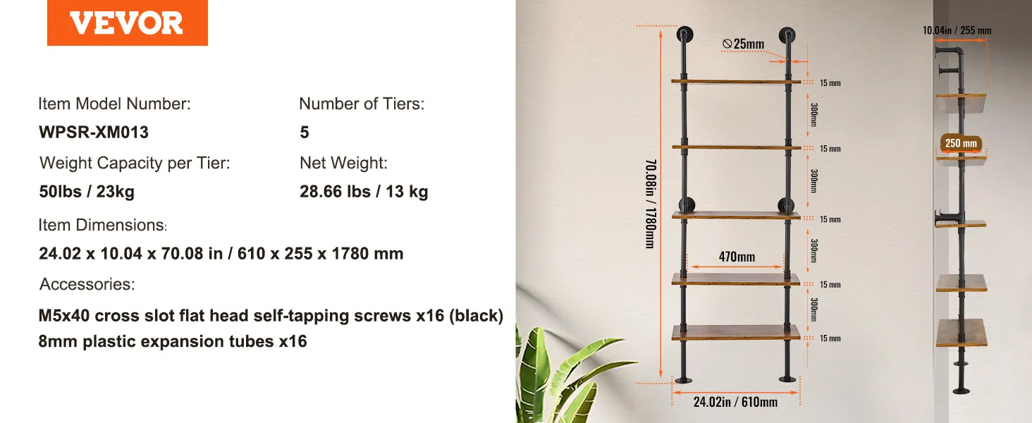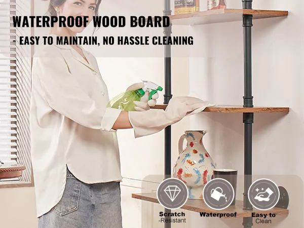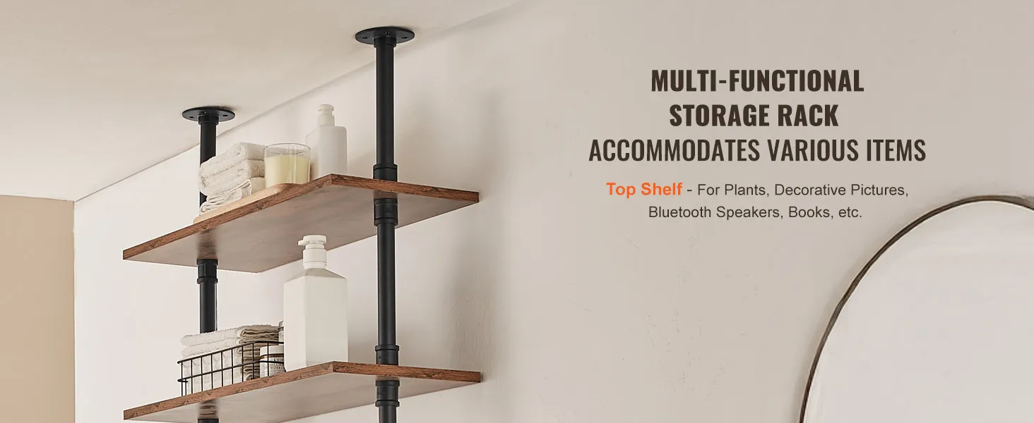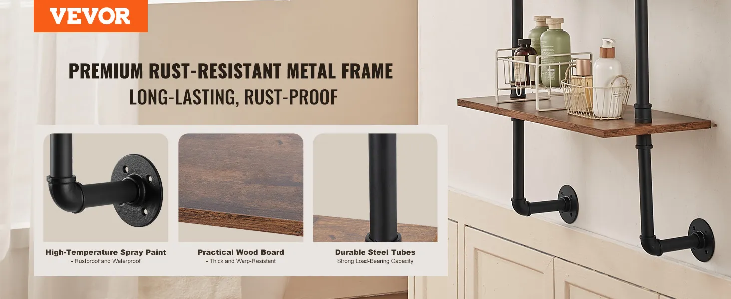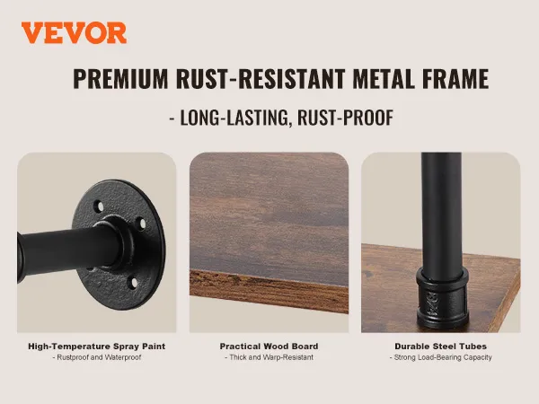 Buis van koolstofstaal: ronde koolstofstalen buis van ∅1 inch / 25,4 mm, sterk draagvermogen, niet gemakkelijk te breken, zorgt voor een veilige en stabiele opslag. 0,6 inch / 15,24 mm dikke houten planken bieden voldoende zwaartekracht zodat u gemakkelijk allerlei voorwerpen kunt plaatsen. Geen problemen meer met makkelijk buigbaar of materiaal van slechte kwaliteit.