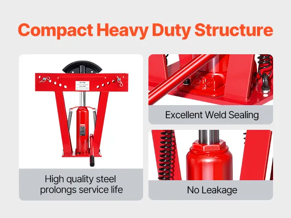 Durable and Sturdy: This exhaust pipe bender is made from high-quality steel with solid structure and excellent wear resistance. Equipped with a hydraulic and return spring system, this tube bending tool helps you efficiently complete pipe bending tasks.