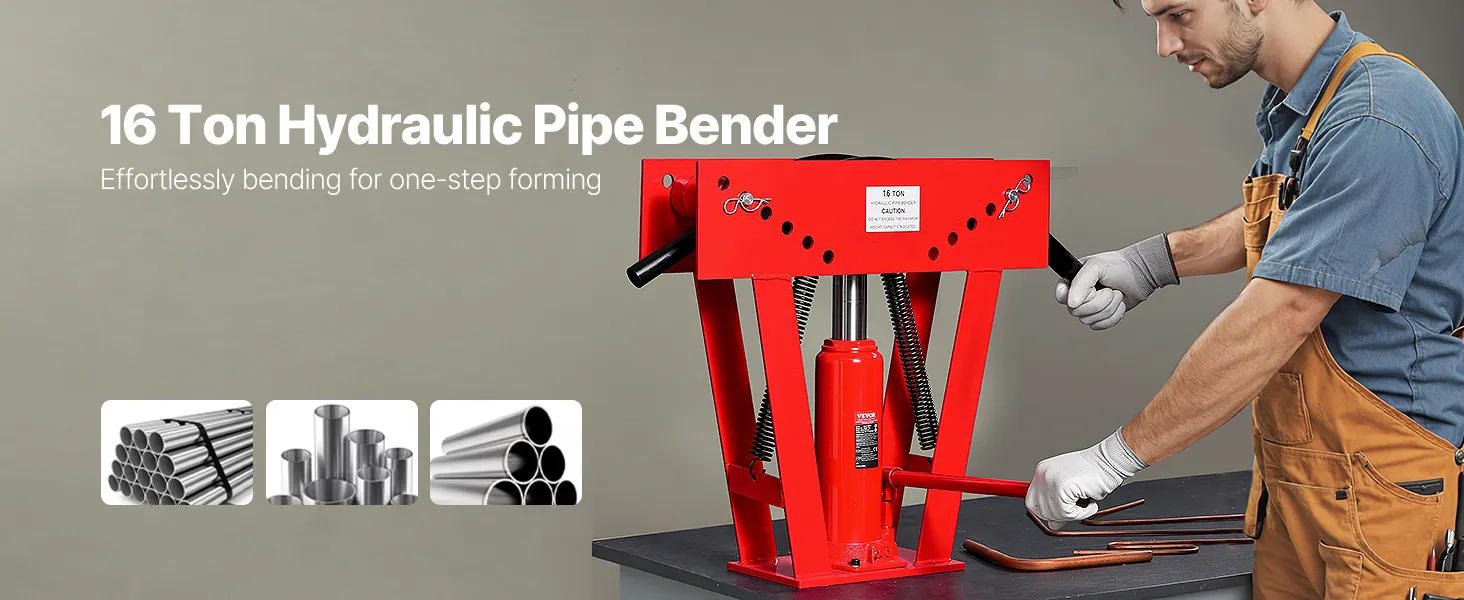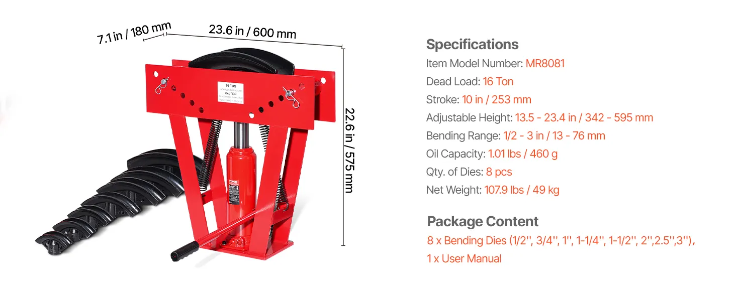 VEVOR hydraulische pijpenbuiger, 16 ton pijpenbuiger met 8 matrijzen (1/2, 3/4, 1, 1-1/4, 1-1/2, 2, 2,5, 3 inch), 90-180° verstelbare rollen voor het buigen van diverse metaalsoorten